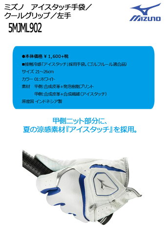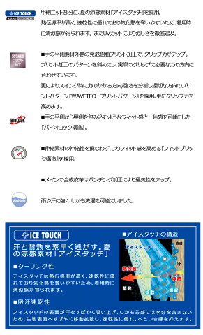 ■左手用 ■甲側ニット部分に、夏の涼感素材『アイスタッチ』を採用。