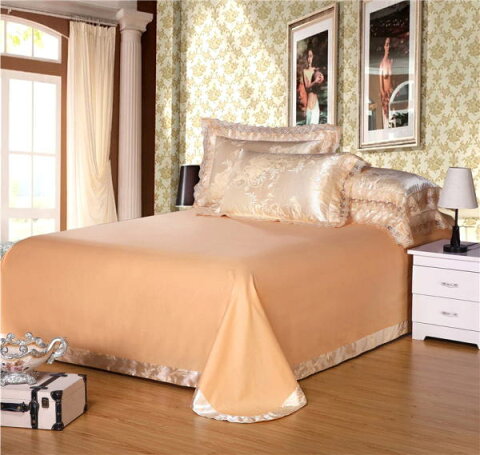 ・高級感ただようゴールドカラーのシルク調ベッドカバーは美しい仕上がりです。