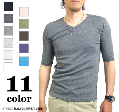 Tシャツ メンズ Vネック 半袖 カットソー 五分袖 無地 重ね着 インナー 5分袖Tシャツ コットン 綿 ポリエステル 半袖と七分袖の中間丈 白 黒 グレー ネイビー ブラック ホワイト 大きいサイズ トップス 春 夏 秋 オールシーズン